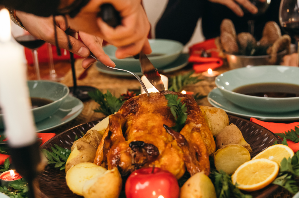 Modera las porciones de carnes rojas y embutidos, prefiriendo el pavo, pescado o pollo preparados al horno. Acompaña tus platos con agua o jugos naturales sin azúcar añadida y limita los postres muy dulces.